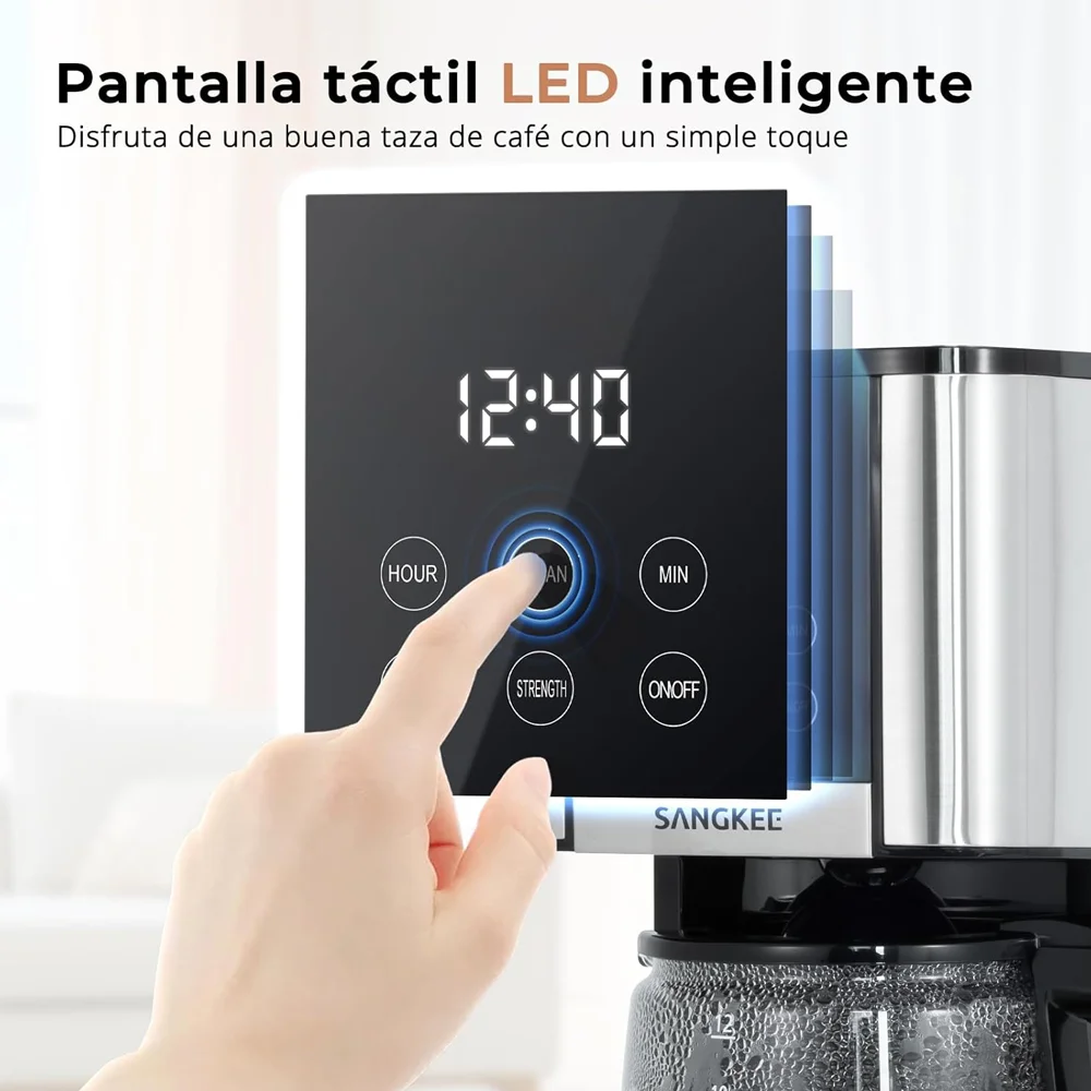 Disfruta de la comodidad de nuestra cafetera eléctrica equipada con una moderna pantalla táctil LCD inteligente, que ofrece indicaciones claras y sencillas del estado de funcionamiento, temperatura y más. Navega fácilmente por los ajustes y personaliza tu preparación con solo un toque. Esta interfaz intuitiva no solo mejora la usabilidad, sino que también añade una estética moderna y elegante a tu cocina.