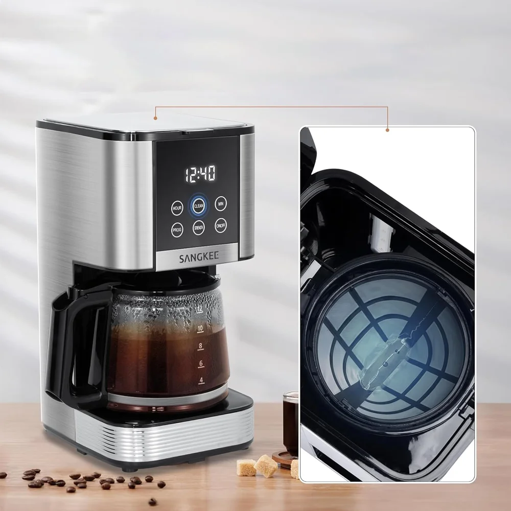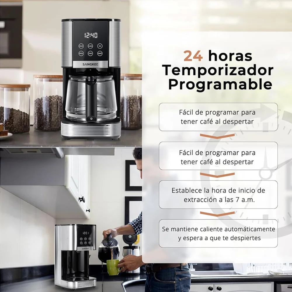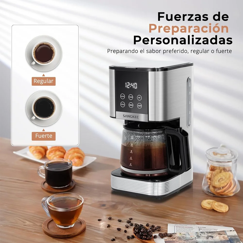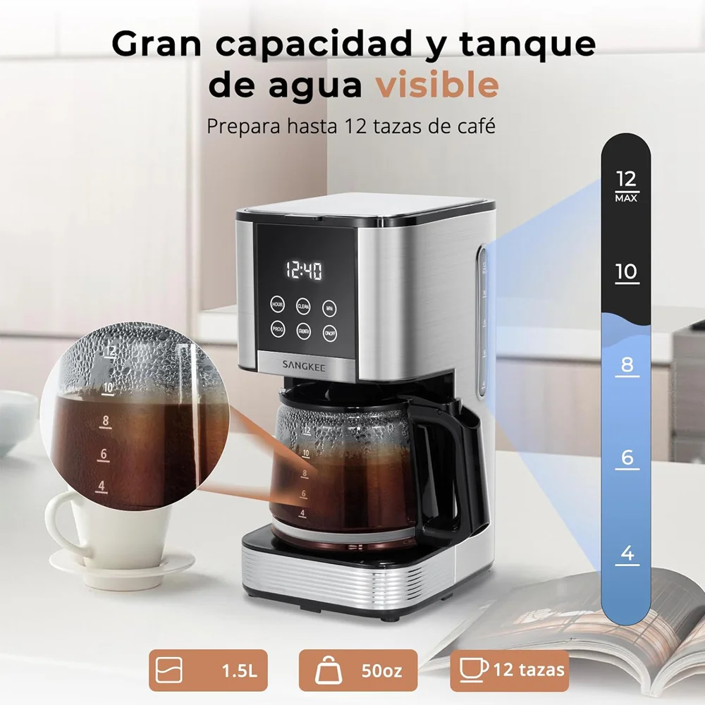 Con esta máquina de café programable de 12 tazas, puedes establecer la hora de inicio de la preparación con antelación y despertarte cada mañana con la taza perfecta. Ya sea que tengas un horario ocupado o prefieras un comienzo relajado, esta función garantiza que tu café esté listo exactamente cuando lo necesites, mejorando tu rutina diaria.