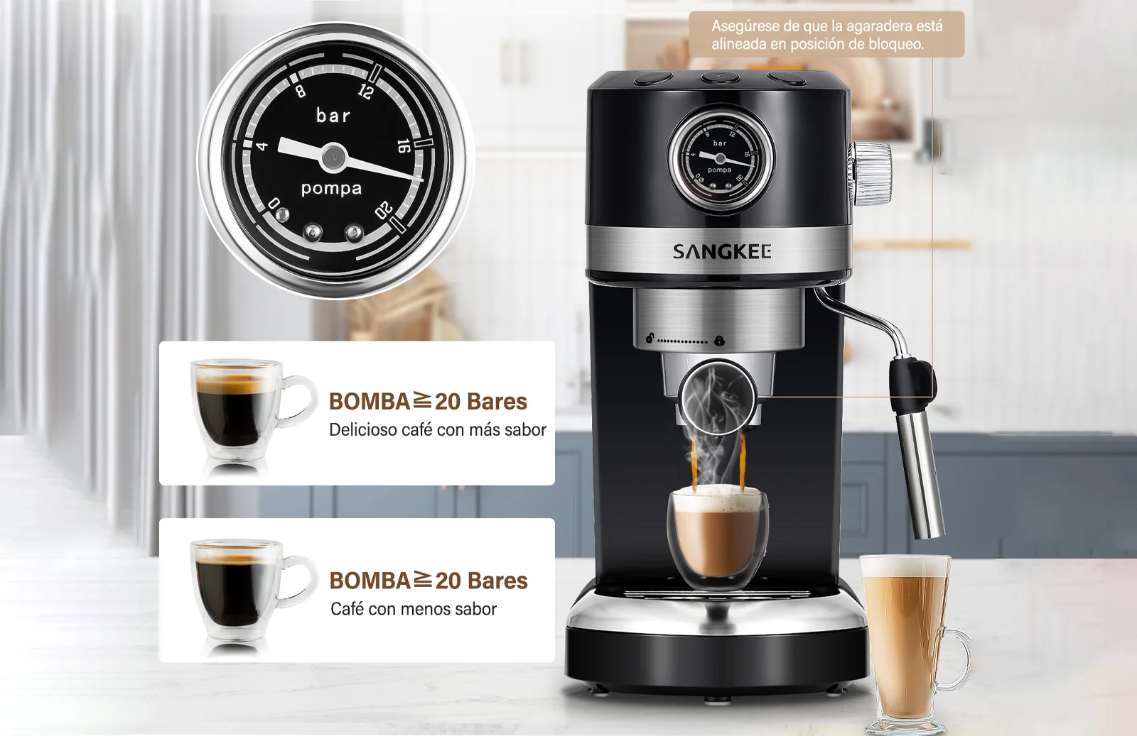 Equipada con bomba italiana de 20 bares y 1350W de potencia en el sistema de calentamiento, esta máquina de espresso brinda una extracción rápida y eficiente, resultando en un espresso más aromático. La válvula a presión integrada muestra la presión exacta para ajustes según preferencias de sabor. El sistema de remojo asegura que el café en polvo esté humectado para una extracción uniforme, y el control inteligente de temperatura del agua PID optimiza el sabor del café.
