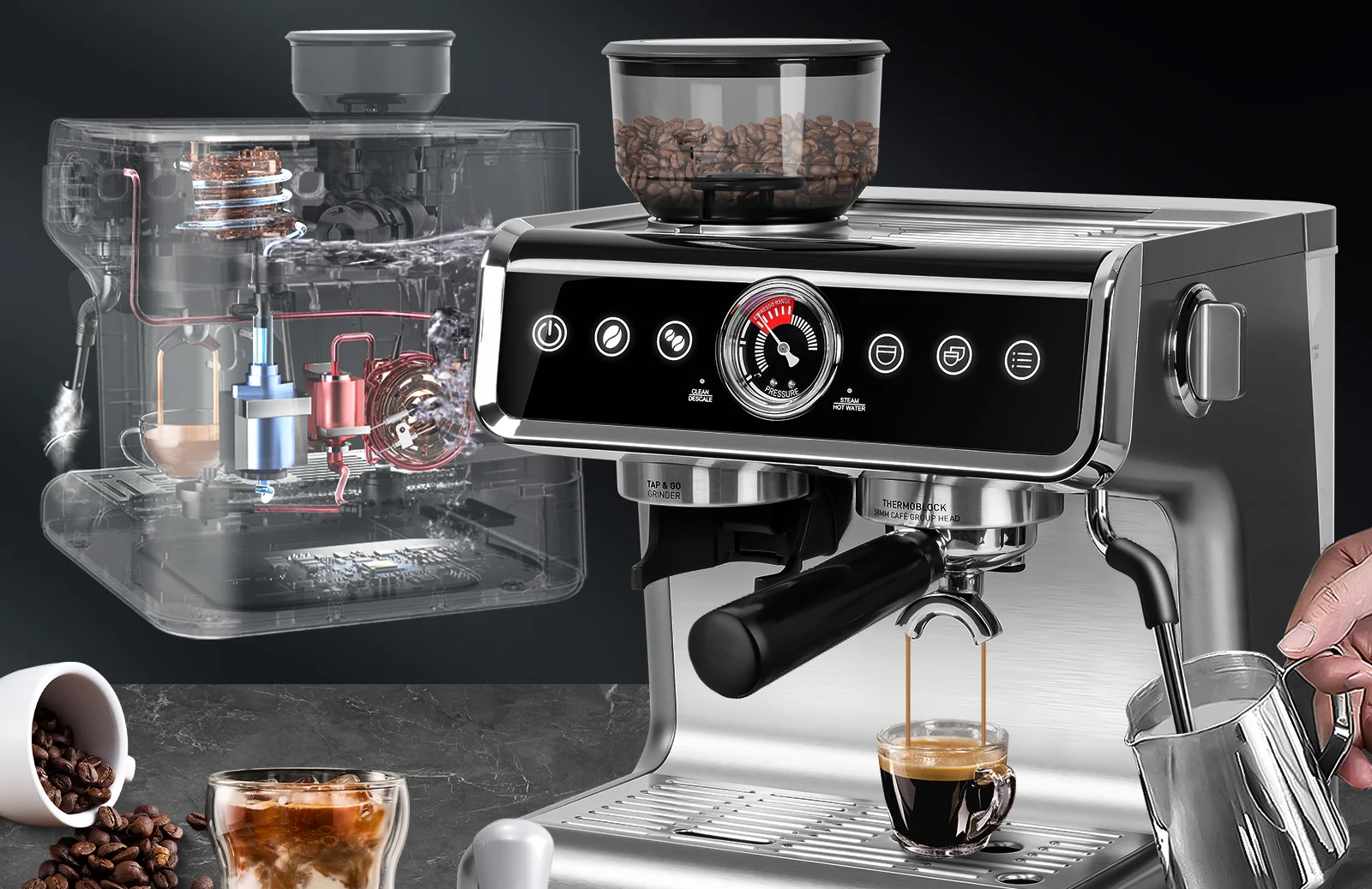Esta cafetera barista cuenta con 2 termostatos separados para extraer café y espumar leche de manera simultánea, proporcionando resultados rápidos y profesionales.