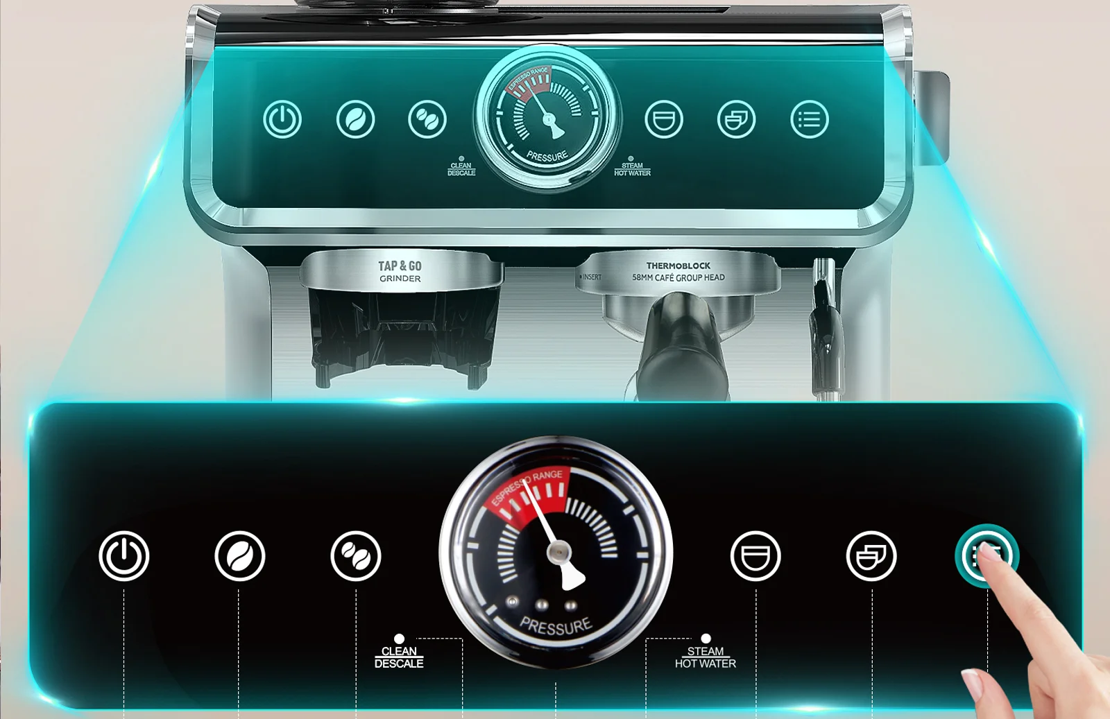 La bomba italiana de 20 bar asegura una extracción óptima de sabor y una crema perfecta para su espresso. El Portafiltro de 58mm de diámetro garantiza una dispersión y extracción uniforme del café.