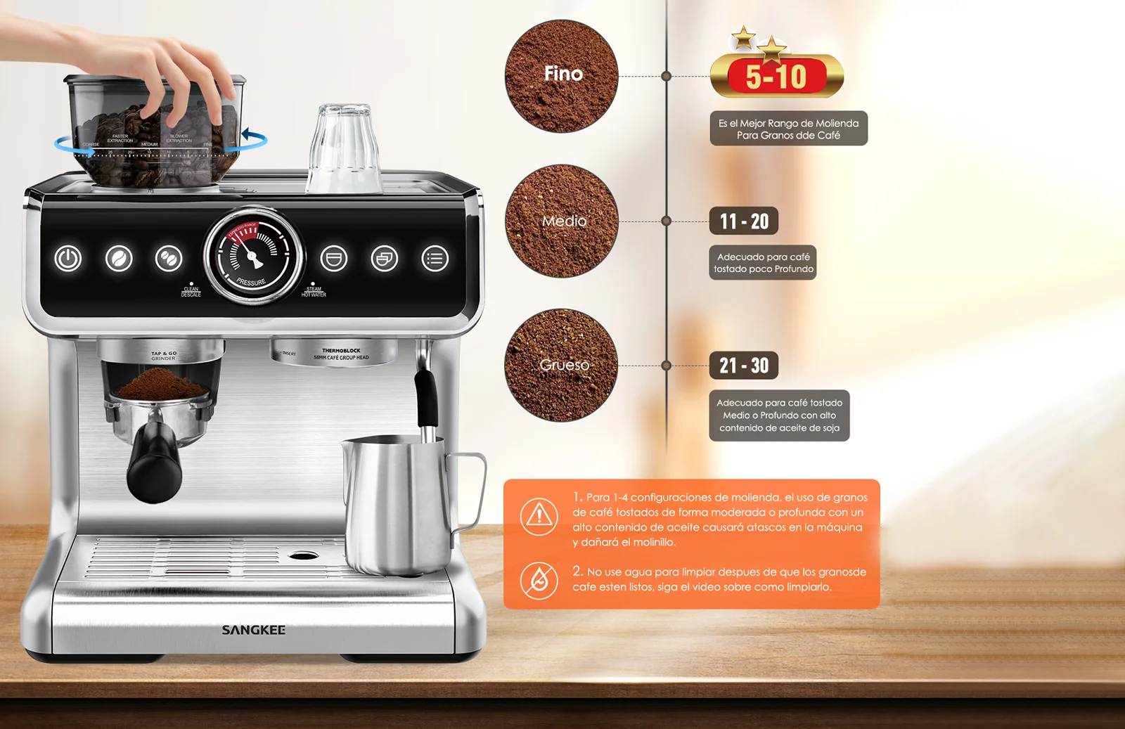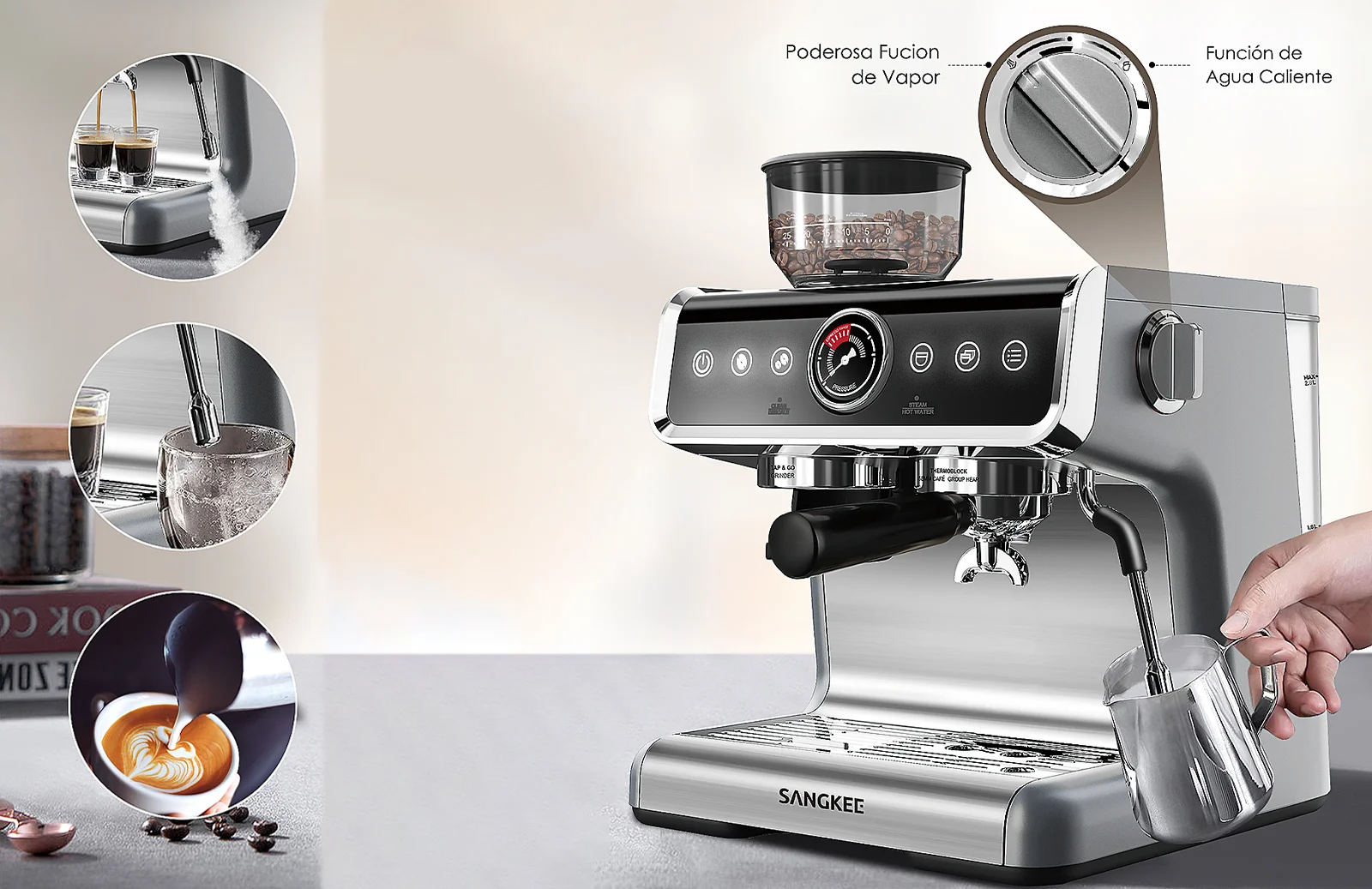 SANGKEE ESG2-Pro Máquina de Espresso, cafeteria con pantalla táctil, espumador de leche, sistema de calentamiento dual, tanque de agua de 2.8 L y 20 bares.